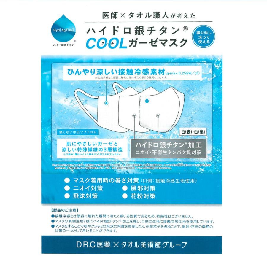 東京バーゲンマニア タオル美術館グループの専門店 「タオル美術館」と公式オンラインショップ では年6月30日現在、接触冷感素材と抗菌効果のある素材を使用した「 医師×タオル職人が考えたハイドロ銀チタン(R)COOLガーゼマスク 」を販売しています。衛生日用品・衛生医療品 衛生マスク・フェイスシールド 大人用 facebook;医薬 DRC医薬 drc 花粉 布 マスク 海老蔵 対策 ハイドロマスク _1 綿100% ガーゼマスク ハイドロ銀チタンソフトガーゼマスク 飛沫 ゆうパケット便送料無料 洗えるマスク 医師×タオル職人が考えたマスク かぜ タオル美術館